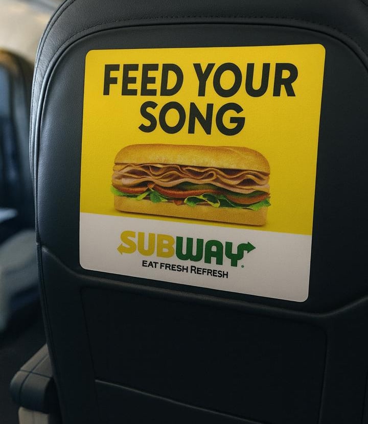 Snapshots of our seat-back and overhead bin ads in action.