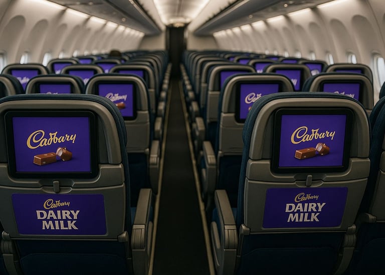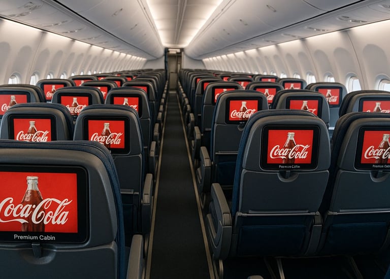 Tailored seat-back advertising and premium overhead ad that boosts airline revenue and brand visibility.